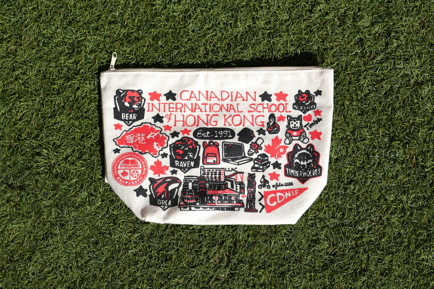Julia Gash case with zipper and CDNIS logo in black and red.